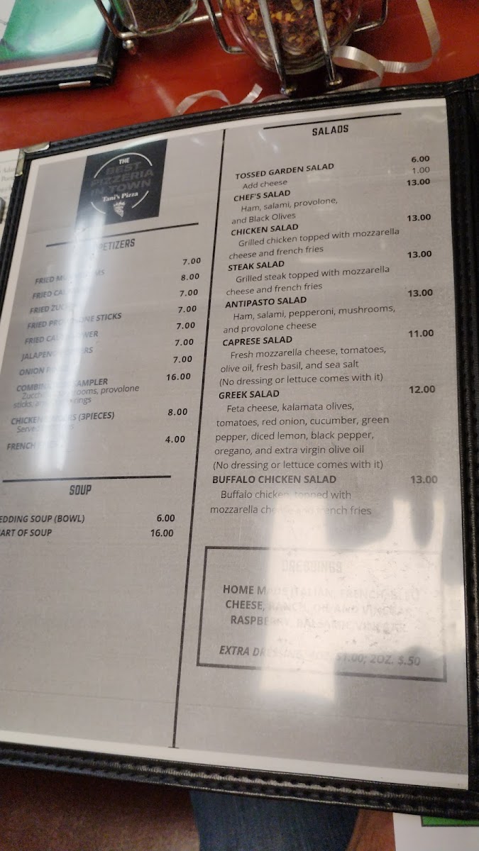 Overall, Tani's Pizza captures the simple pleasures of Italian dining, where fresh ingredients and balanced flavors come together in a setting that’s warm and unpretentious.